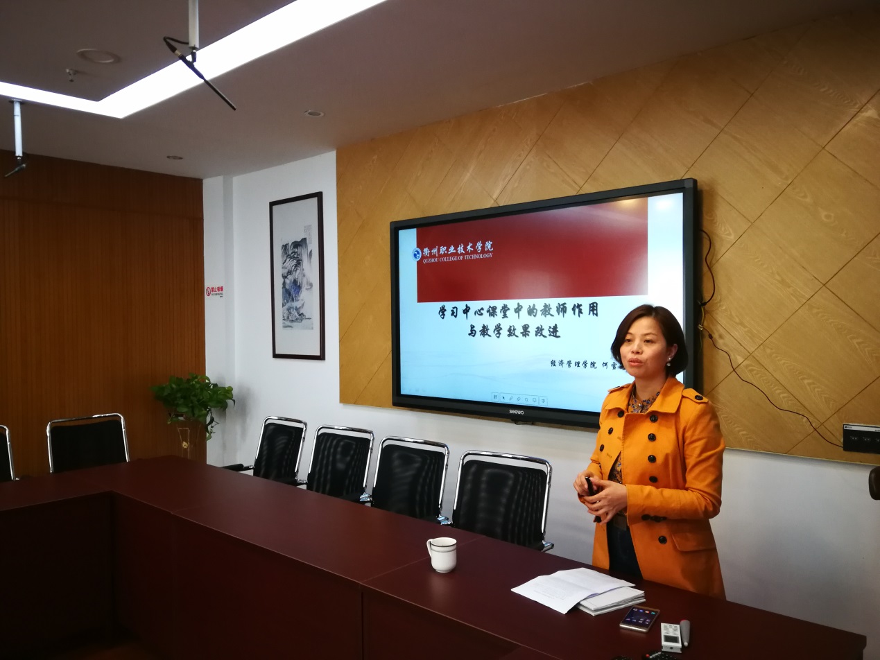 何教授以“学习中心课堂中的教师作用与教学效果改进”为主题,强调了构建学习中心课堂是高职课堂教学转型与变革的取向。何教授提出在建设“双师型”师资队伍背景下,高职院校教师面临的自我专业发展的挑战。她解释了学习中心课堂的含义、特征以及教师的作用,并指出动机激发和效果评价是教师作用方式选择下较为有效的教学效果改进方式。