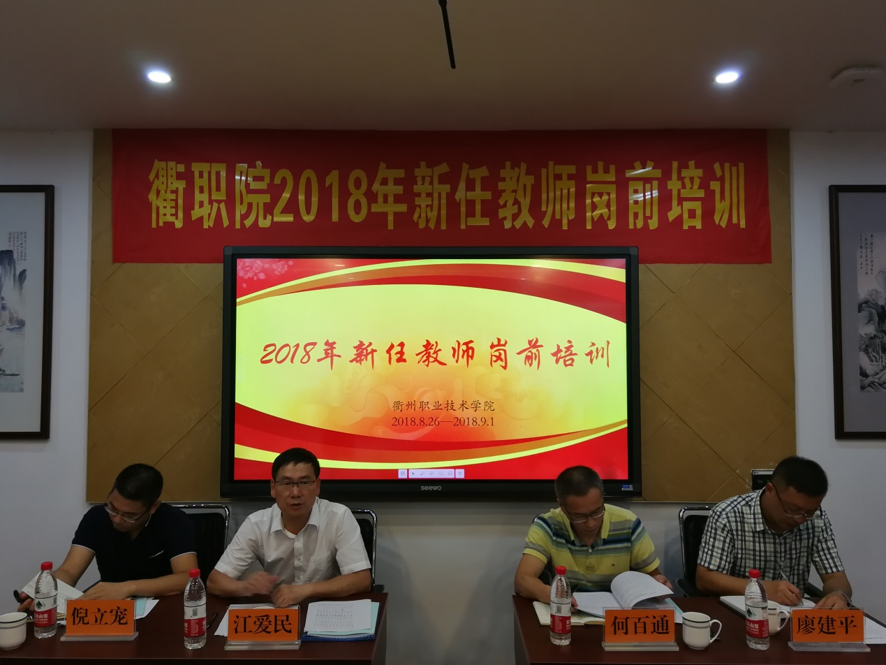 8月26日上午,校长江爱民、副校长何百通、人事处副处长倪立宠、教务处副处长王建出席岗前培训开班式,教务处副处长廖建平主持开班式,全体2018年入职的新任教师参加开班式。