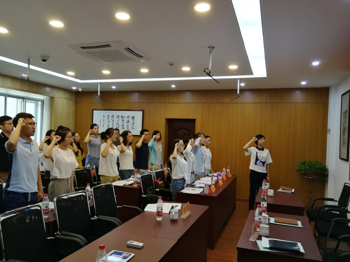 倪立宠解读了新任教师人事管理制度,重点介绍了新任教师坐班管理制度。王建重点解释了学校教学差错、教学事故认定及处理办法,并建议新任教师深入系统地学习学校教学管理规章制度。廖建平带领新任教师学习了“全国优秀教师”李芳同志的先进事迹,号召新任教师学习李芳同志无怨无悔、奉献教育和矢志不渝的理想追求。随后,新任教师进行了庄严的入职宣誓。