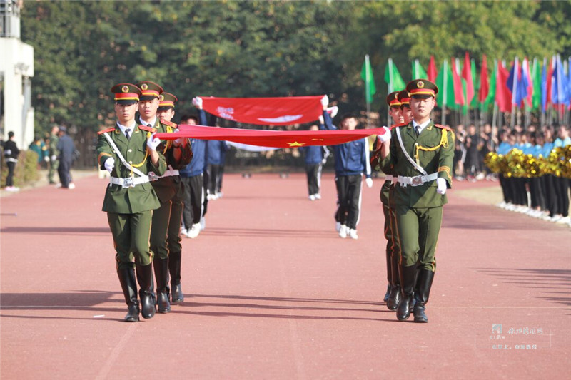 校园国旗护卫队雄姿英发,昂首阔步,走向升旗区域。这是一支“特殊”的队伍,成员均为退伍复学大学生,他们的飒爽英姿,早已成为清晨校园里最亮丽的一道风景线。