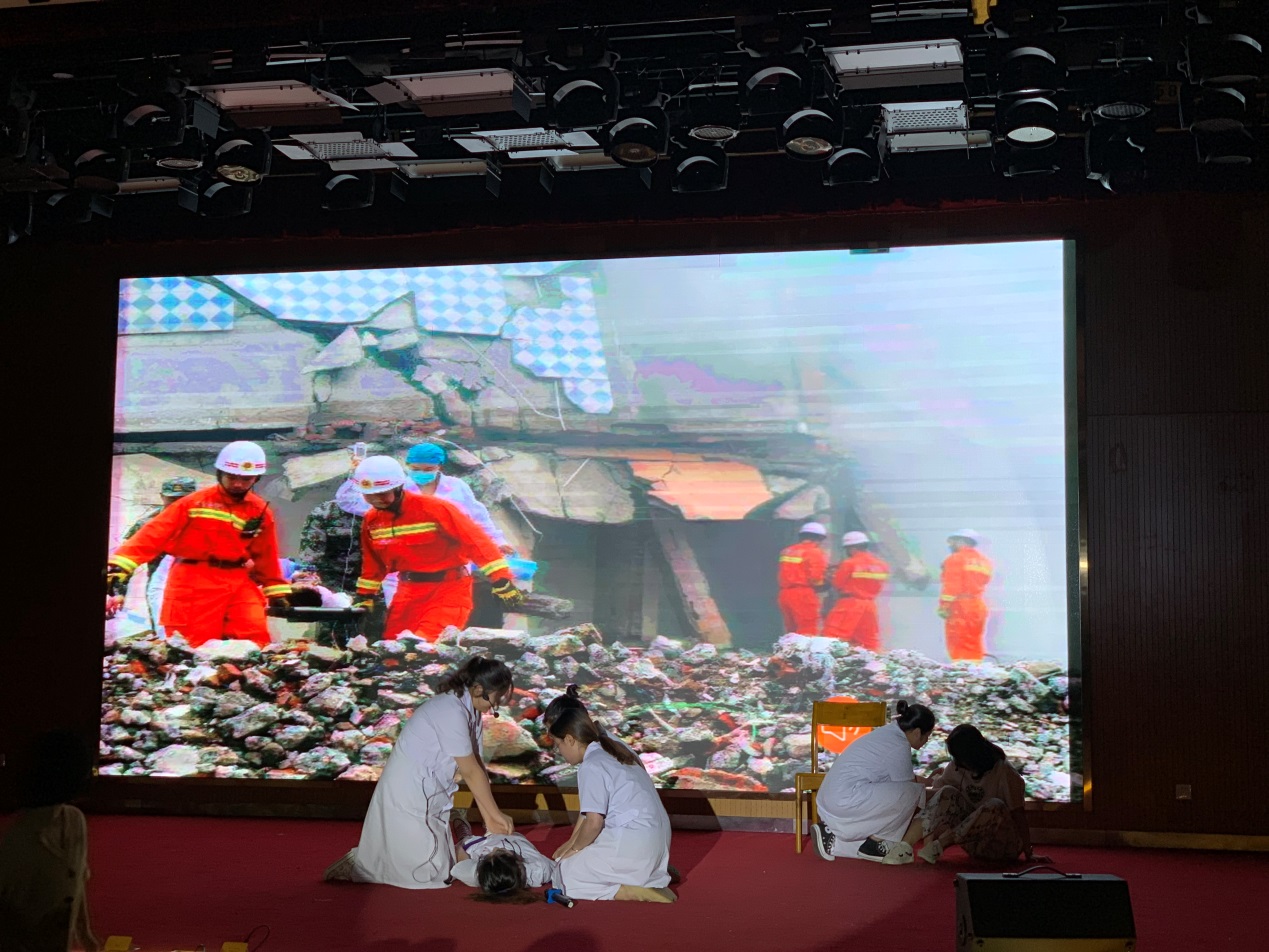 为了这次护理心理情景剧比赛,从4月份就开始演员的选拔、剧本的筛选以及紧锣密鼓的排练,同时安排专业老师参与到每一个剧目的指导,力争“情景剧”更贴近医院的真实环境,演绎医护人员真实的工作生活。通过工作情景再现,“演员们”一丝不苟的表演,不仅给观众带来了笑声与泪水,更是让同学们明白无论是在医院面对病人还是在抗震救灾现场处理突发事件,护士们一样奉献着“仁爱、大爱”,都无愧于“白衣天使”的美誉。