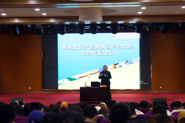 11月20日,来自浙江横店影视职业学院影视制作学院杨剑副教授受邀在校图书馆1号报告厅为摄影摄像技术、数字媒体艺术设计两个专业学生作题为《影视文化产业集聚区平台上的优势专业建设研究》专题讲座。