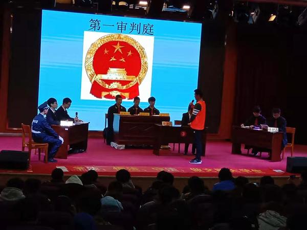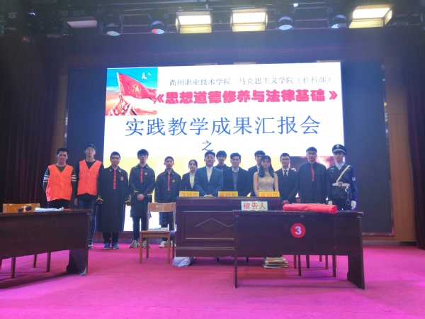 12月25日下午,马克思主义学院在图书馆一号报告厅举行《思想道德修养与法律基础》课实践教学活动——模拟法庭汇报展示。本次模拟法庭由池锦刚老师导演、学生主演,马克思主义学院全体教师和学生代表参与了活动。