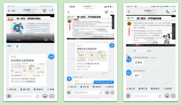 4月3日下午2:30,计财处根据学校防控工作安排开展了新型冠状病毒肺炎疫情防控线上培训,部门全体人员参加。培训以钉钉直播的形式进行,大家系统观看学习了“衢州市学校(幼儿园)新型冠状病毒肺炎疫情防控培训”视频,在观看过程中大家认真作了学习笔记并进行了在线交流,通过学习,大家对新型新型冠状病毒肺炎疫情情况有了更加深刻的认识,对开学准备工作以及开学后的防疫要求有了充分的把握。