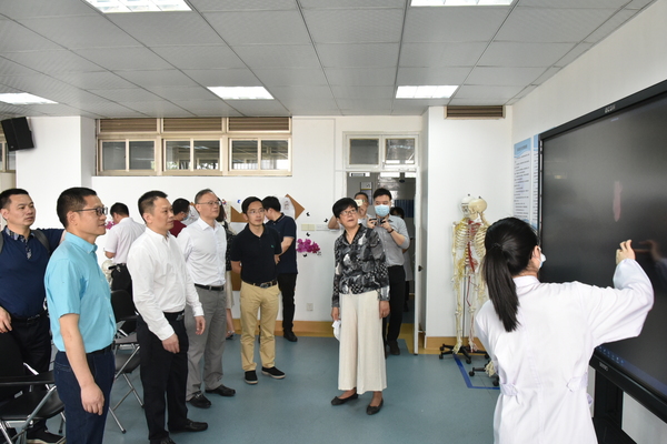 崔戴飞对物产中大医疗健康投资有限公司党委书记、董事长洪卫良,党委委员、副总经理陈华东,柯城区人民医院院长佘荣明,衢州物产凤凰医院院长陈江等一行人的到来表示热烈欢迎。一行人在参观校园、1+X考证中心、医学实训中心的过程中,详细了解了我校的基本情况、专业设置、师资队伍、学科建设等情况。
