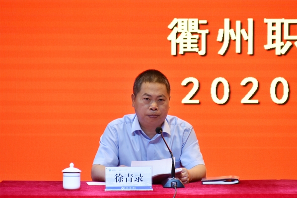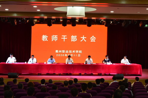 8月11日下午,我校召开教师干部大会,宣布省委关于校领导班子调整决定。省教育厅党委副书记干武东,衢州市委常委、组织部部长林晓峰出席会议并讲话。会议由干武东主持。省委组织部干部三处处长徐青录在会上宣读省委干部任免文件,并传达了省委书记车俊同志在集中换届高校新任领导班子成员集体谈话会上的重要讲话精神。