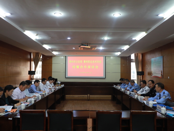 10月14日,我校与市公安局校警联动座谈会在校行政楼四楼会议室召开。校党委书记徐须实,副校长巫少龙、市公安局党委副书记、副局长黄忠京出席座谈会。