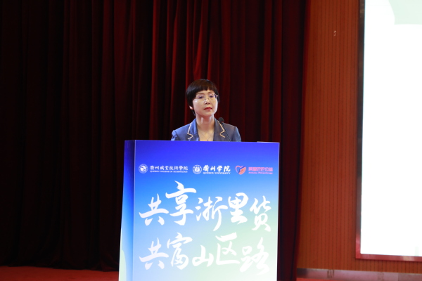徐浪静致辞。徐浪静表示,“共享浙里货 共富山区路”直播电商暨AI公益活动,是深化产教融合、服务乡村振兴战略的生动实践,也是深化衢职院——阿里巴巴橙点数字商贸产业学院的具体举措。活动以“政校行企联动”为核心,引入阿里巴巴公益的行业资源与前沿技术,设计覆盖AI应用、直播运营、数据分析的体系化培训课程。期待同学们以饱满的热情、专业的素养和无限的创意,诠释新时代“新农人”的精神内涵,用专业的数据分析能力、内容创作能力和市场运营能力,为山区共富注入澎湃的青春力量!
